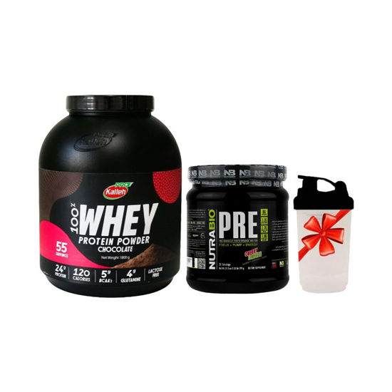 | مشخصات | هدیه: شیکر | پودر وی پروتئین 100% کاله پرو 1800 گرمی با طعم شکلات | پودر پری ورک آوت نوترابایو 599 گرمی با طعم لیمو گیلاس |
