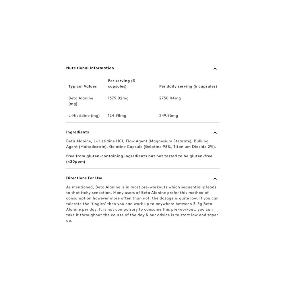 | مشخصات | در هر سروینگ حاوی 1375.02 میلی گرم بتا آلانین و 124.98 میلی گرم هیستیدین, فاقد گلوتن و سویا | |
